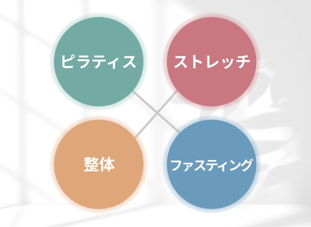 運動だけ、食事だけでは叶わなかった目標を、ピラティス・ストレッチ・整体・ファスティングの組み合わせで実現します。